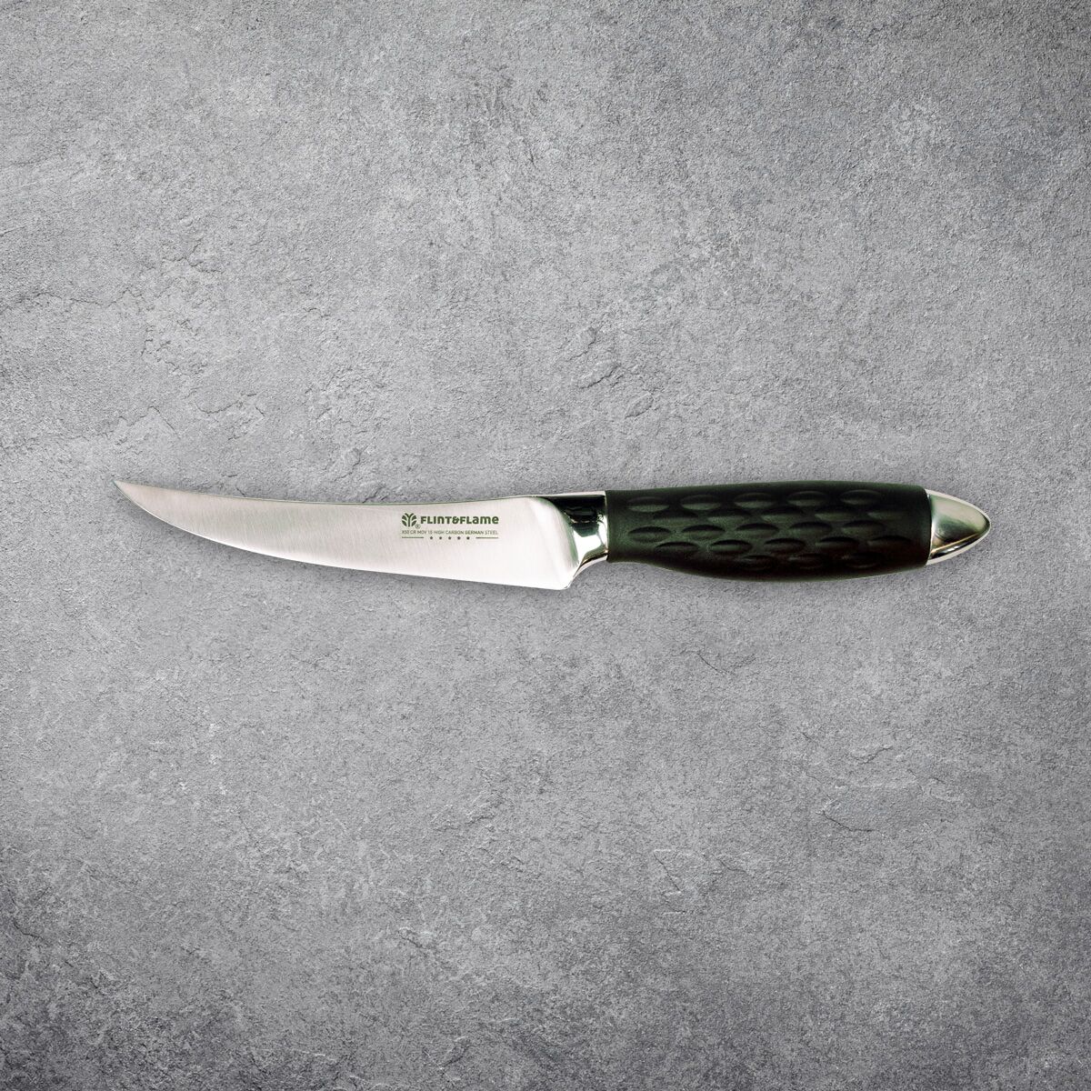 The Pro Series 6” Boning knife features our distinctive high impact silicone handle for extra grip with a modern appearance. It’s perfect for de-boning, trimming meat and fish and perfect for butterflying large cuts of chicken, beef etc. It’s really a must have for preparing any type of meat! This Flint & Flame knife arrives in our lockable blade cover.